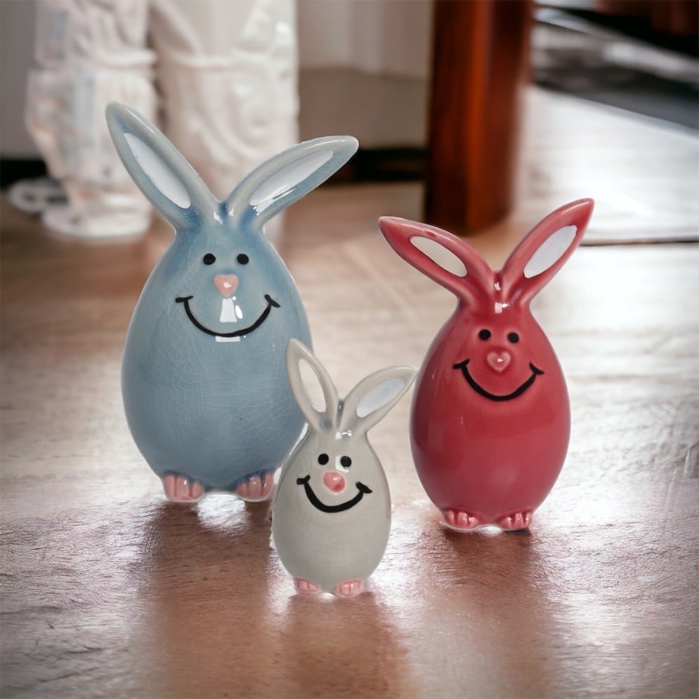 مجسم ارانب سيراميك طقم مكون من ثلاث قطع.