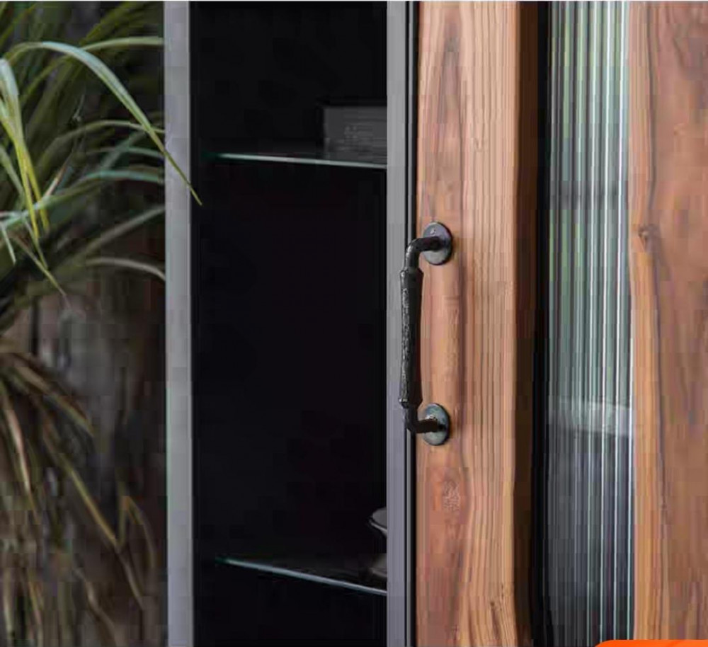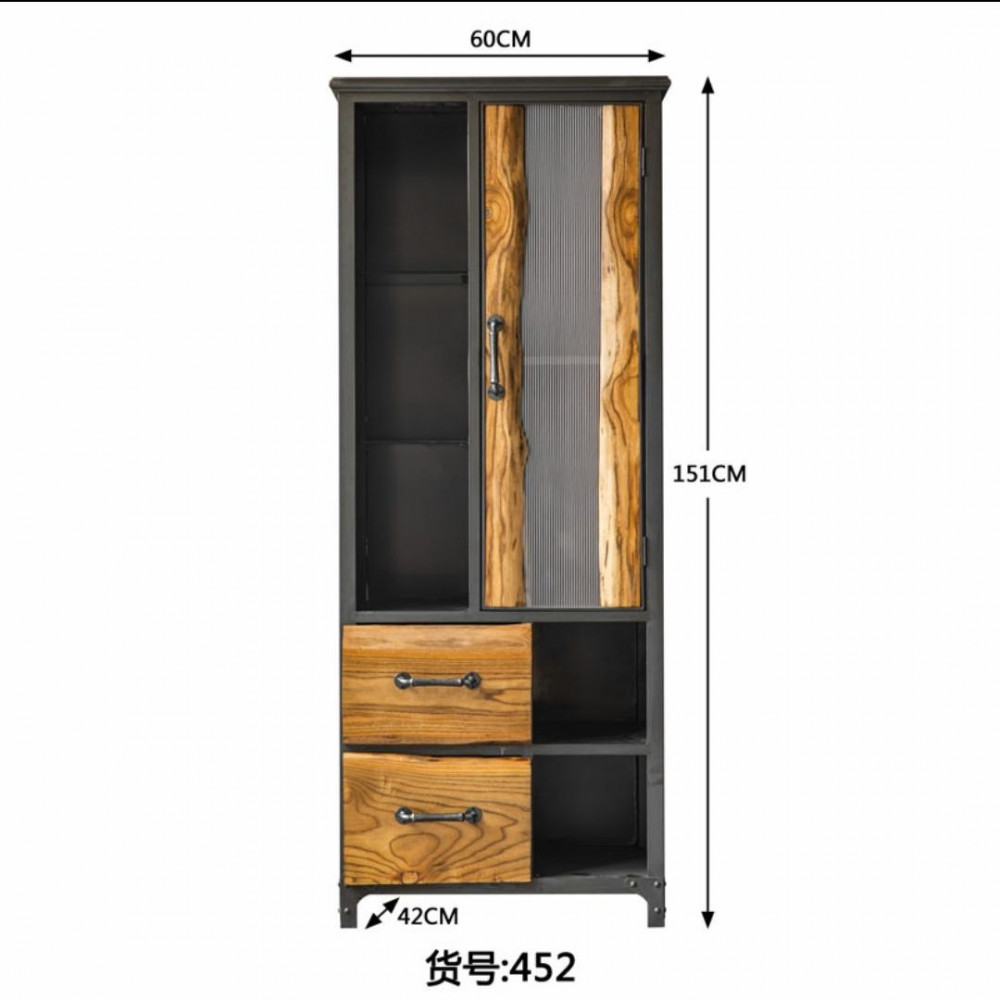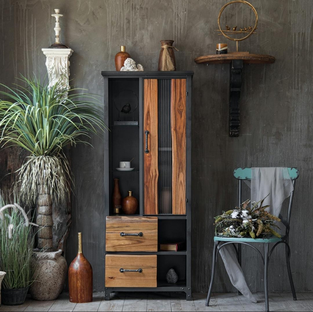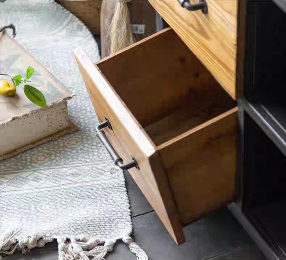 طاوله من الحديد مع الأرفف الزجاجيه. والأدراج من الخشب الطبيعي