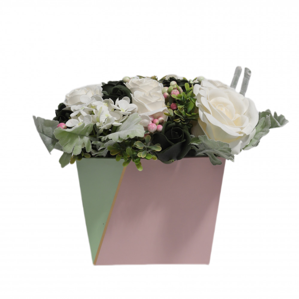 مجموعه صبارات صناعيه متنوعه في إناء شكل قوقعه.