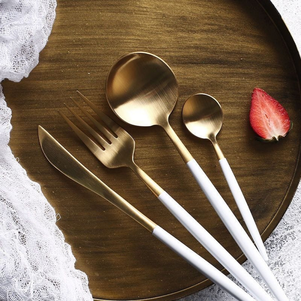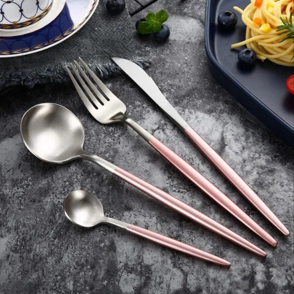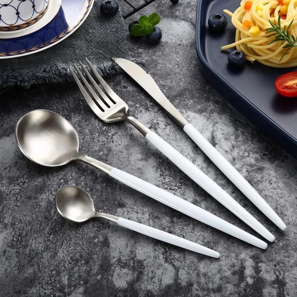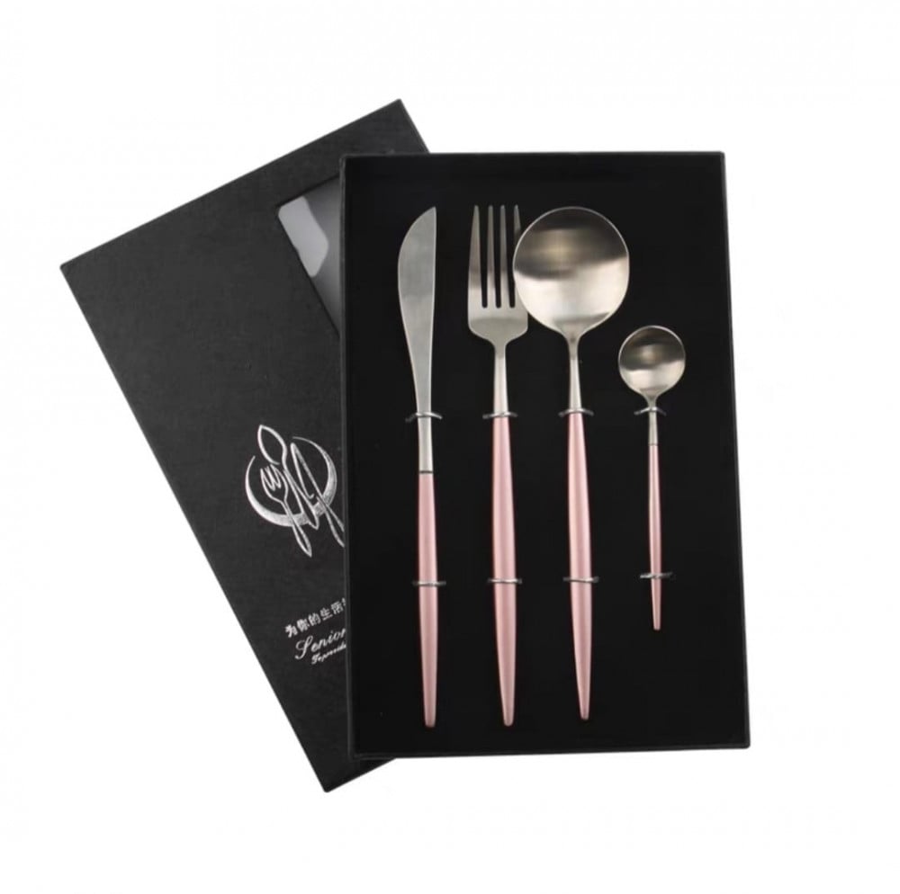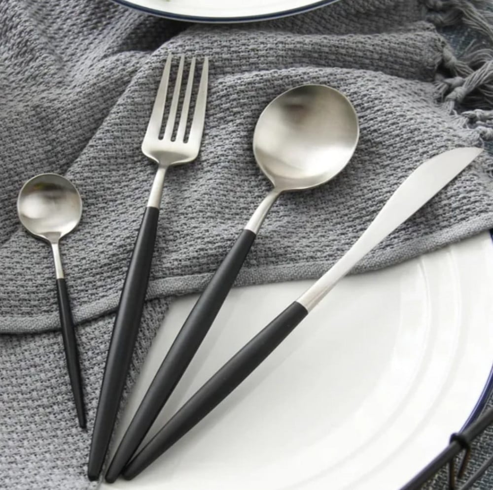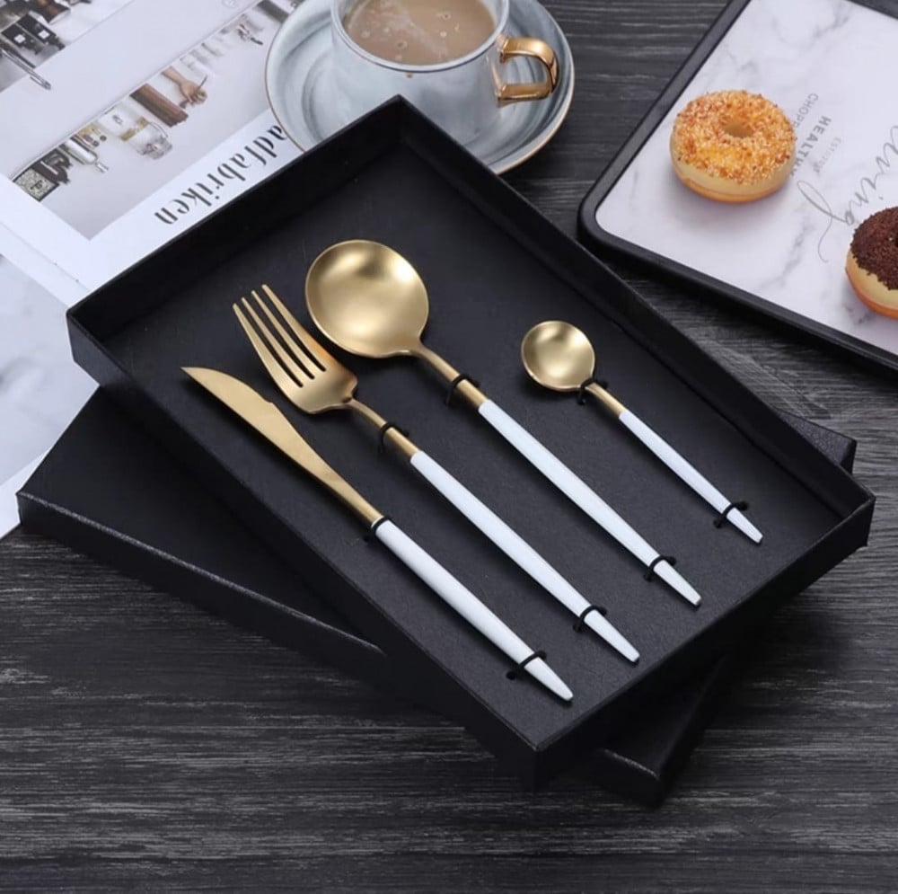 *طقم مائدة من الاستيل المقاوم للصدأ مكون من 4 قطع.