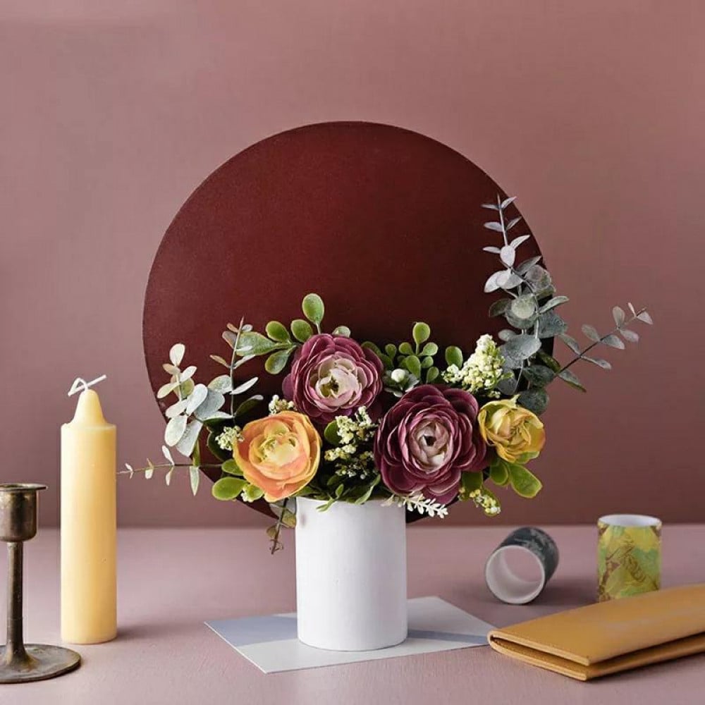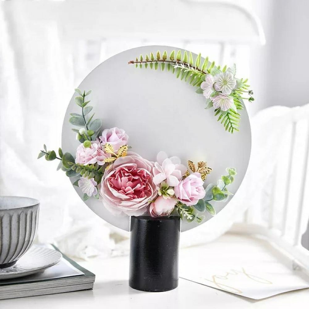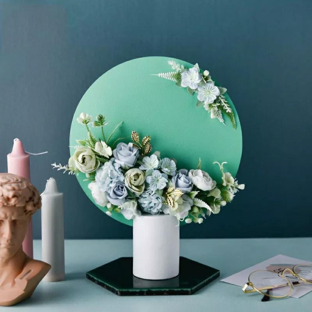 مجموعه صبارات صناعيه متنوعه في إناء شكل قوقعه.