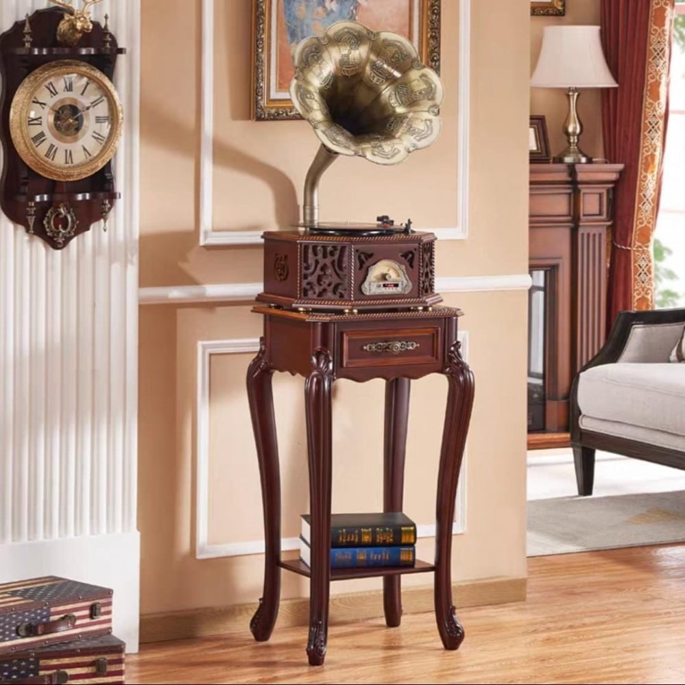 - قرامافون هو مشغل اسطوانات متعدد الوظائف يتيح لك الاستماع إلى الموسيقى بطريقة كلاسيكية وممتعة.