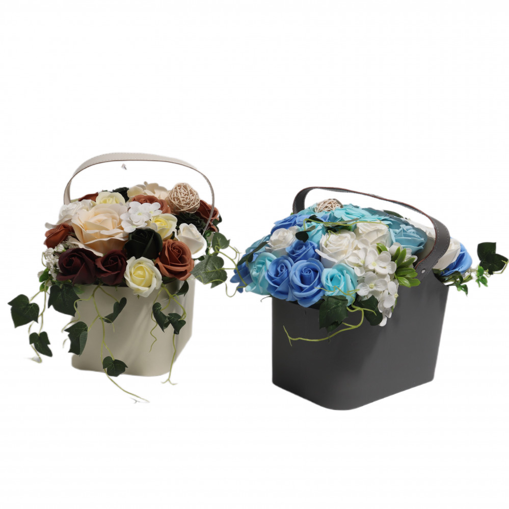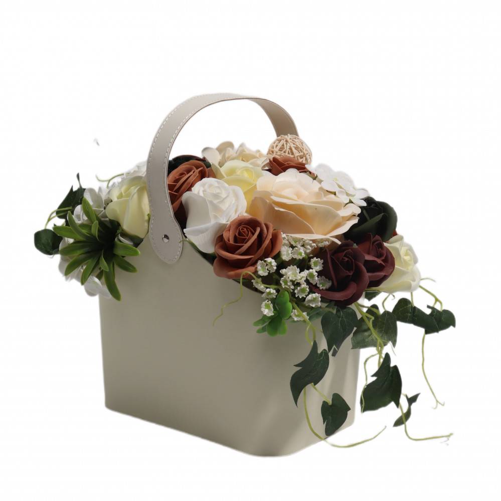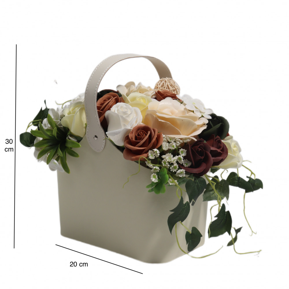مجموعه صبارات صناعيه متنوعه في إناء شكل قوقعه.